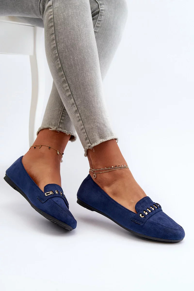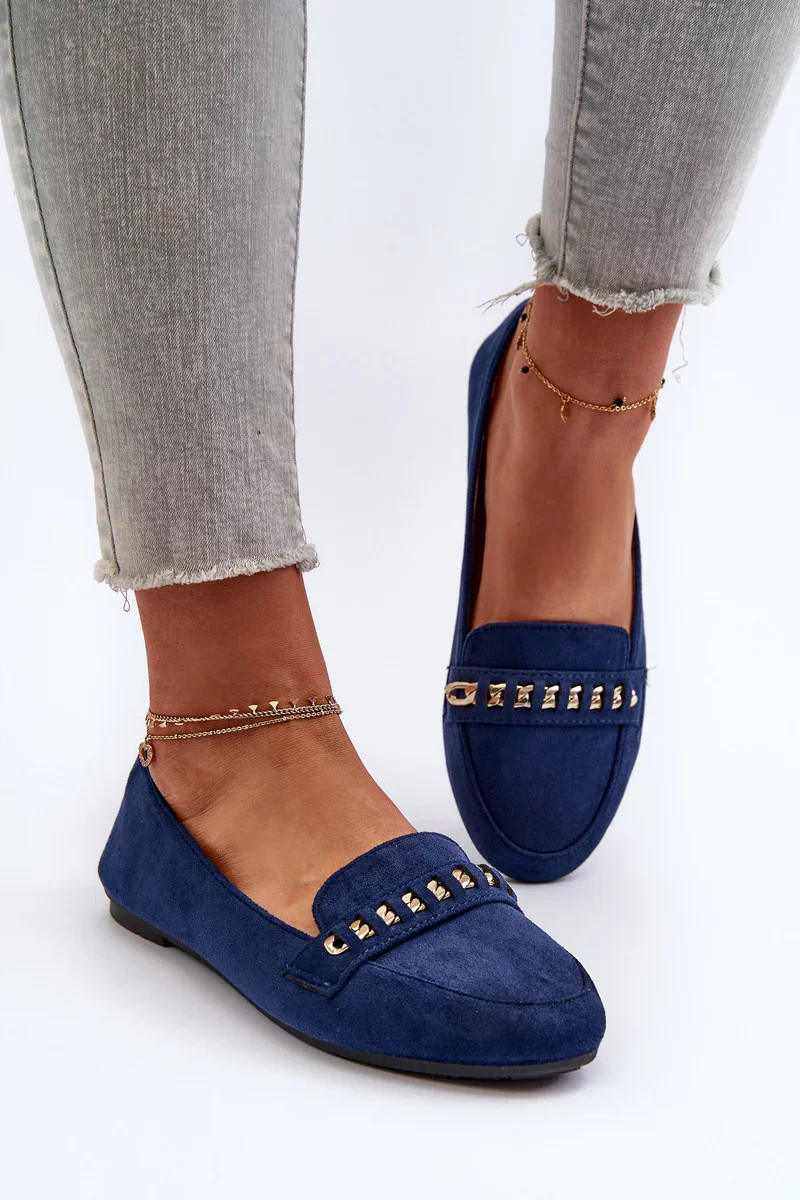 Lesklé dámské mokasíny s řetízkem, tmavě modrá Aredilla