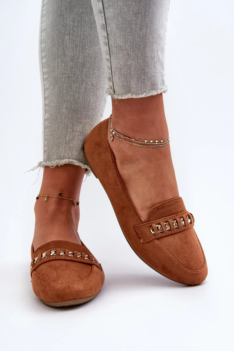 Lesklé dámské mokasíny s řetízkem Velbloudí Aredilla