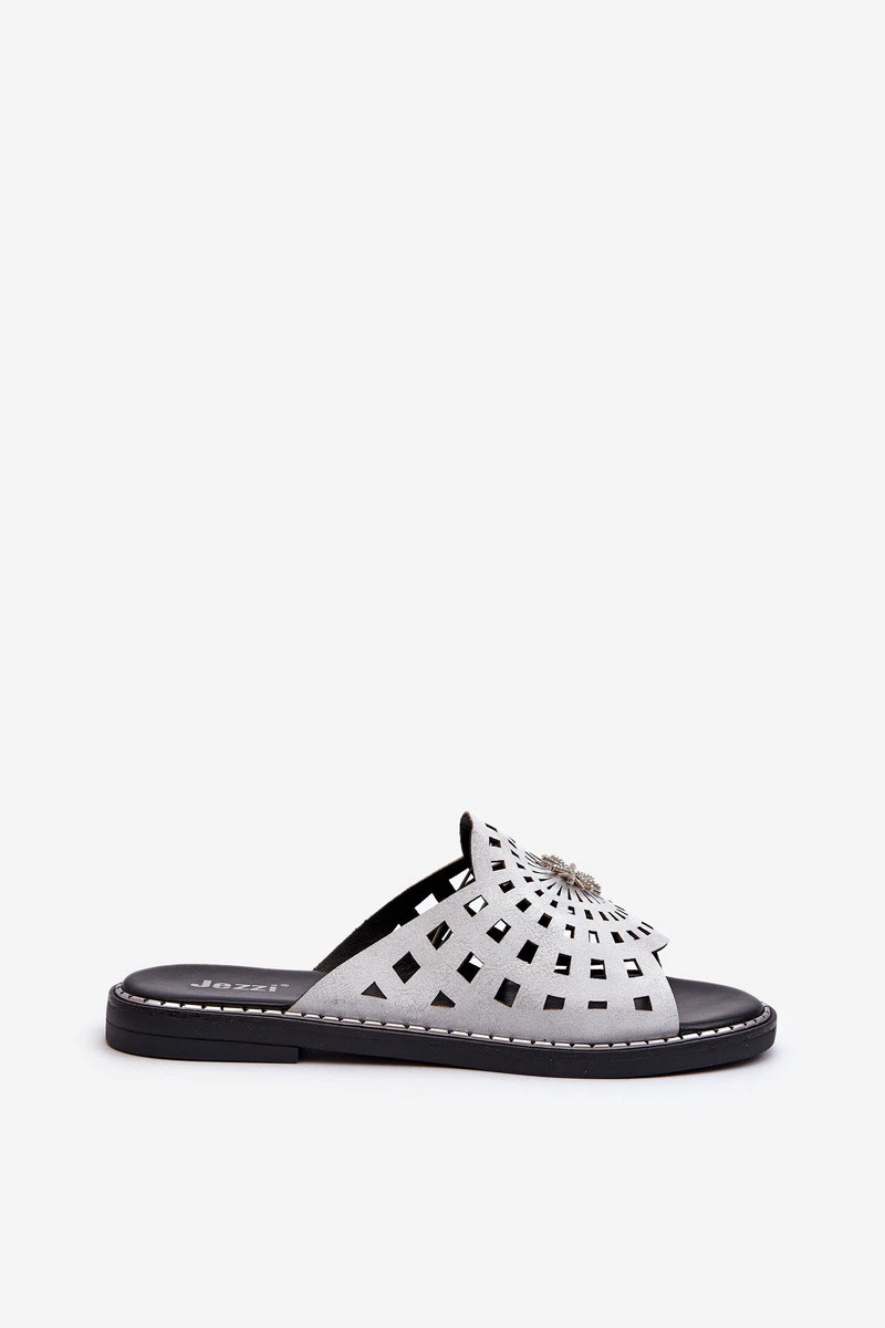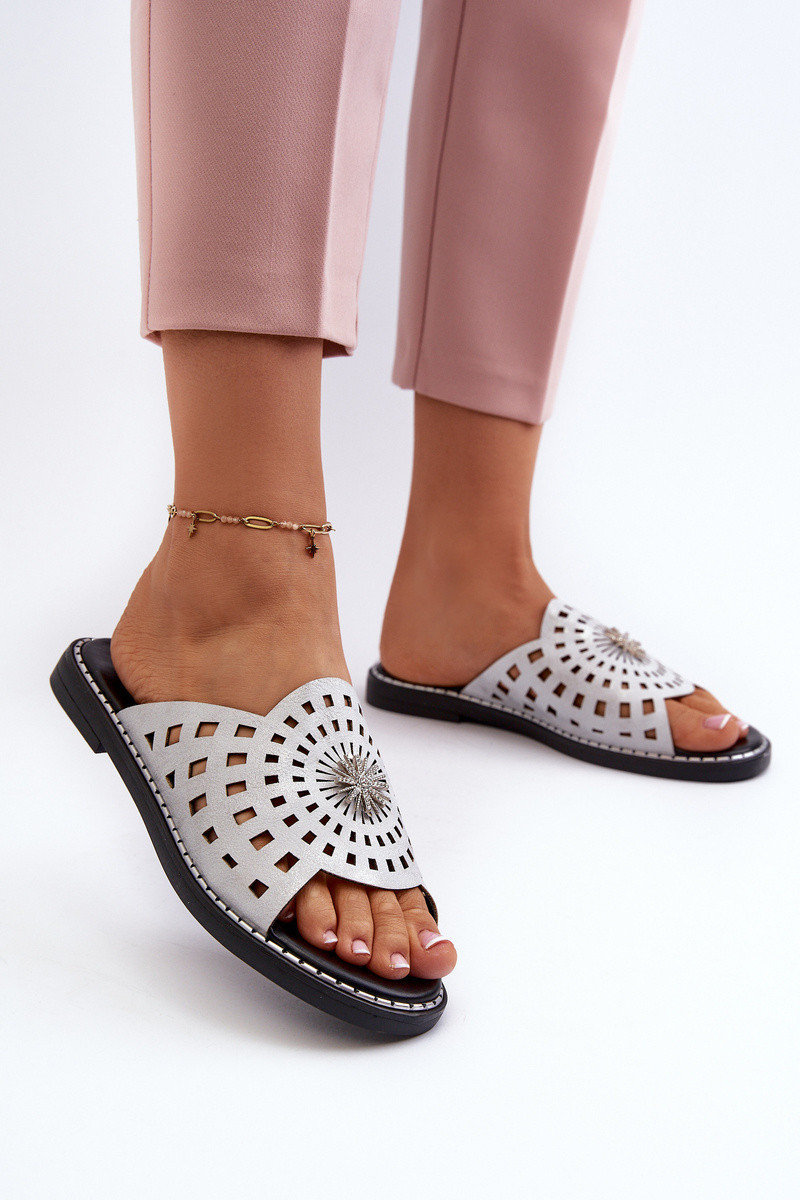 Lesklé dámské žabky na ploché podrážce s ozdobou stříbrné model 21658410 - Boto