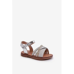 Lesklé Dětské Sandálky Na Suchý Zip Stříbrné Delphina