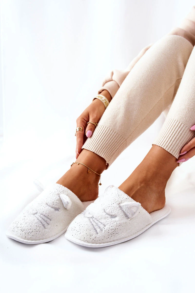 Lesklé kočičí pantofle Ears bílé Kaisy