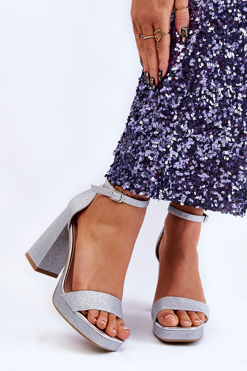 Lesklé Sandály Na Podpatku Stříbrné model 21607005 - Boto