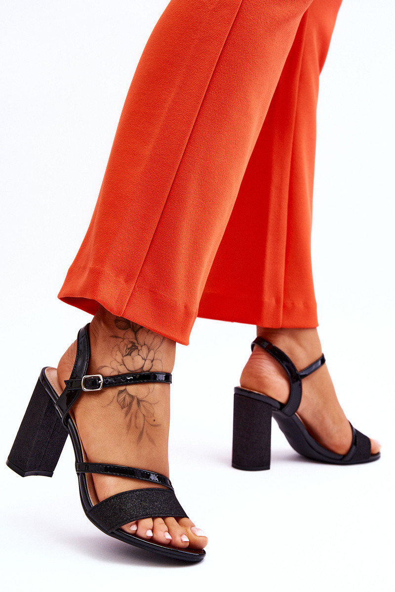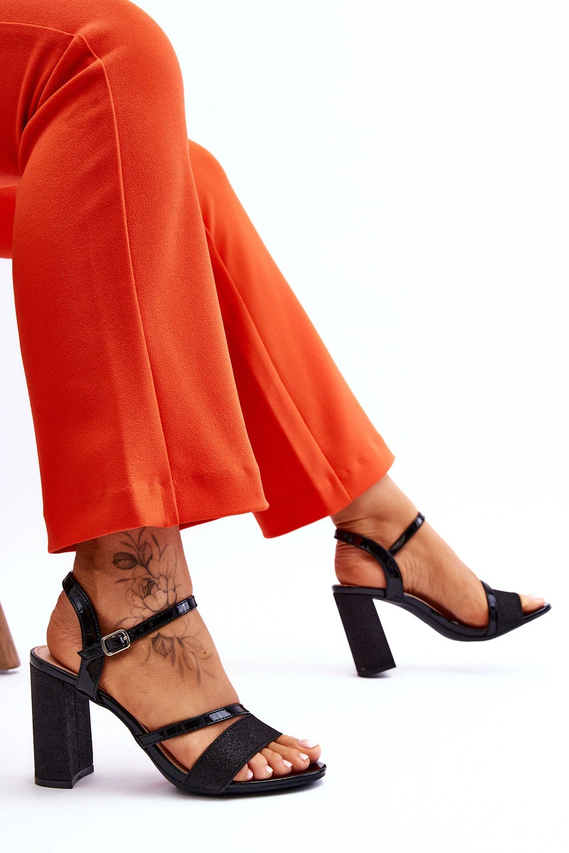 Krásné sandály na podpatku v podobě sloupku. Tyto boty jsou vyrobeny z eko kůže. Proužek vpředu a pata jsou navíc třpytivé, díky čemuž vypadají boty opravdu elegantně. Měkká stélka z ekokůže zajistí pohodlí při používání. Boty mají kolem kotníku nastavitelný pásek s přezkou. Tento model využijete při mnoha rodinných oslavách, večírcích s přáteli nebo obchodních jednáních. Při výběru velikosti se prosím řiďte tabulkou velikostí.