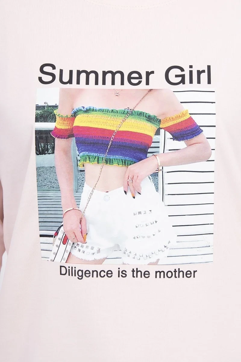 Letní dívčí halenka s potiskem pudrově růžová