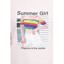 Letní dívčí halenka s potiskem pudrově růžová