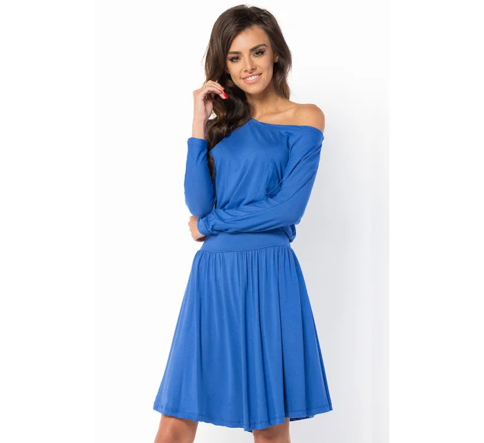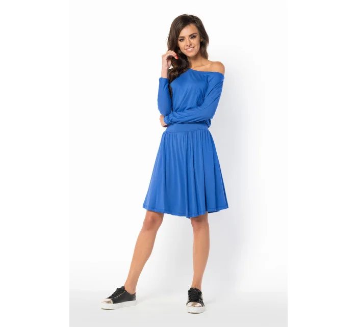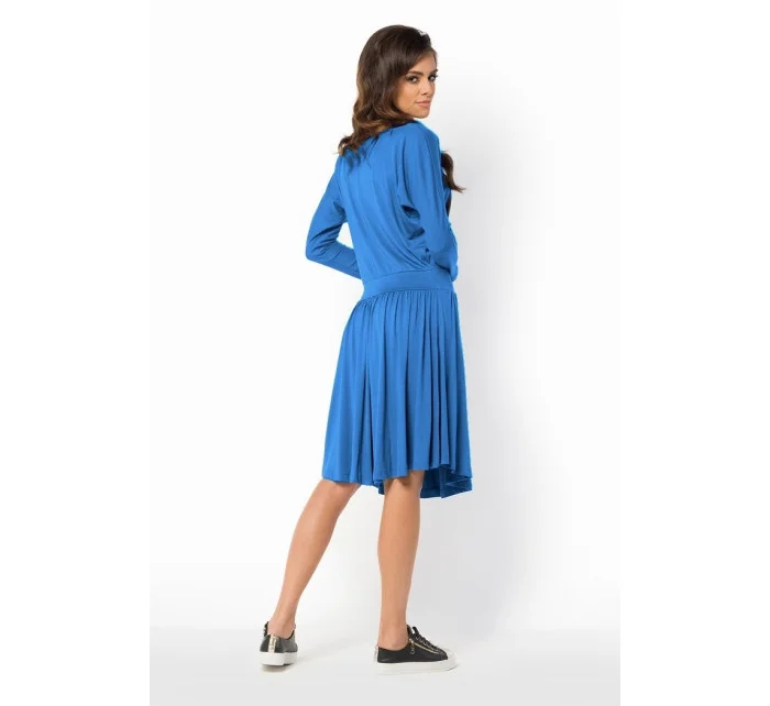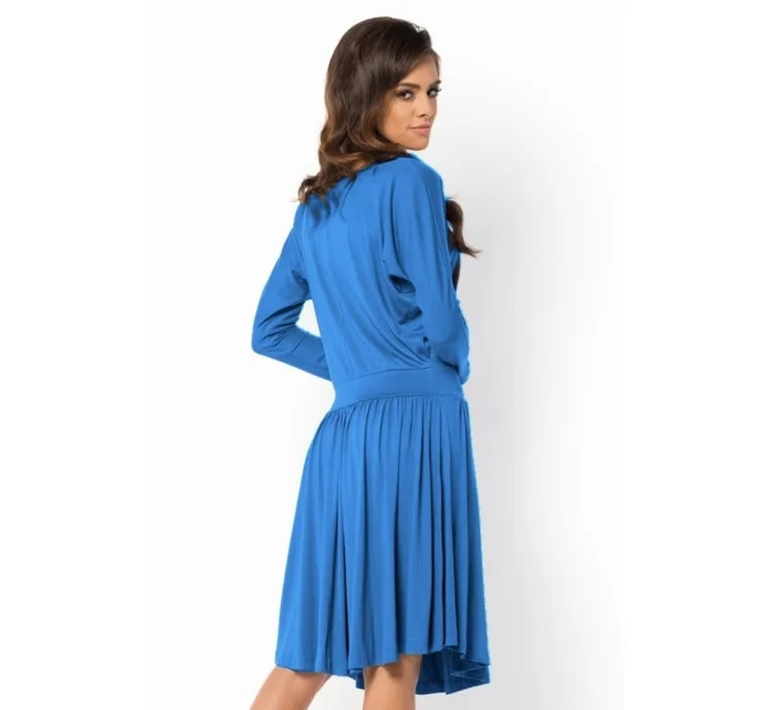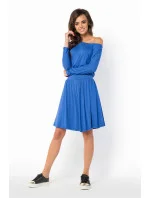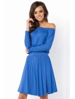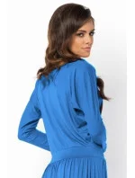 Letní šaty dámské ve model 15042425 střihu značkové středně dlouhé modré Modrá - Makadamia