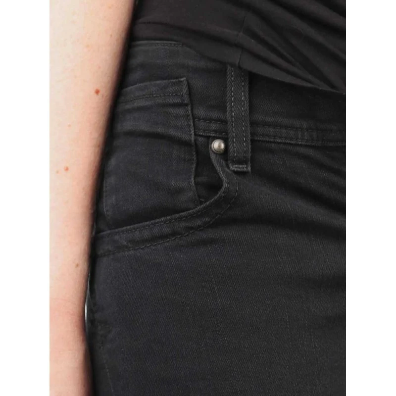 Dámské rybářské kalhoty s nízkým sedem, zapínáním na zip a dva knoflíky, zadními kapsami na zip a černou koženou nášivkou na zadním pásu.