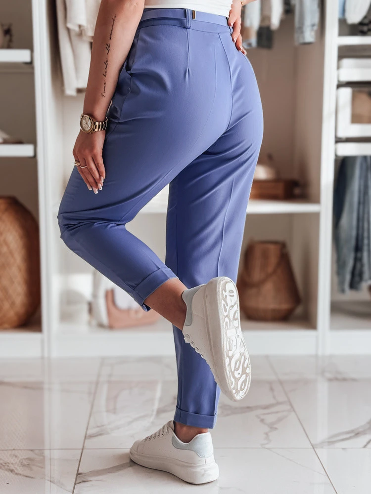 Ležérní dámské plisované kalhoty s páskem PLISSO modrá FashionStreet UY2517