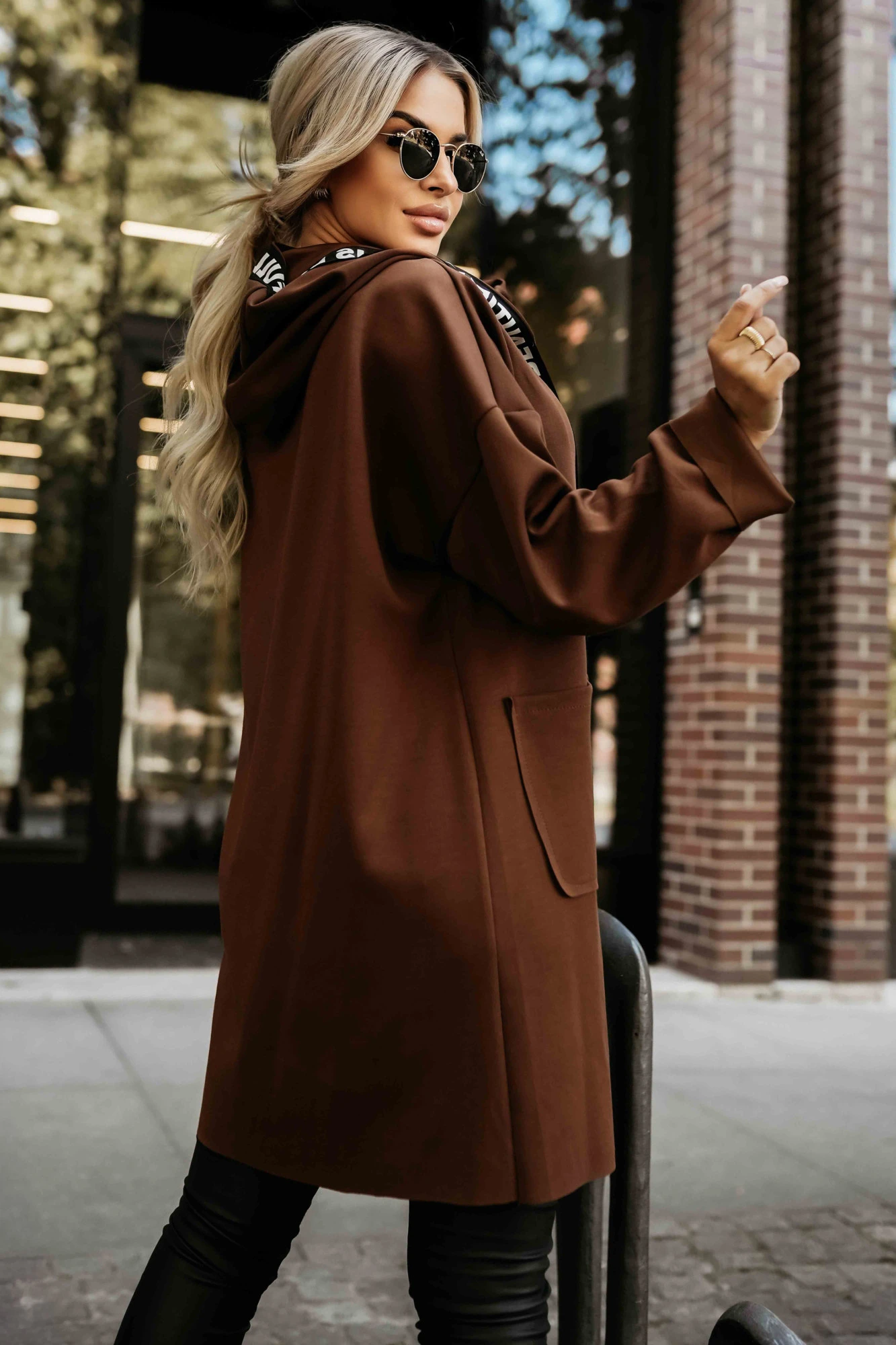 - ✅ Módní kabát s kapucí a nápisem