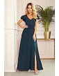 Lidie - to jsou dlouhé dámské šaty s výstřihem a s volánky na ramenou.