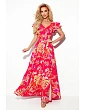 Přidání recenze k LIDIA - Růžové květované dlouhé dámské šaty s výstřihem a volánky 310-4