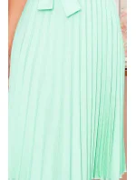 LILA - Plisované dámské šaty v mátové barvě s krátkými rukávy 311-9