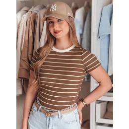 LINESS dámské pruhované basic tričko ry2810 hnědé