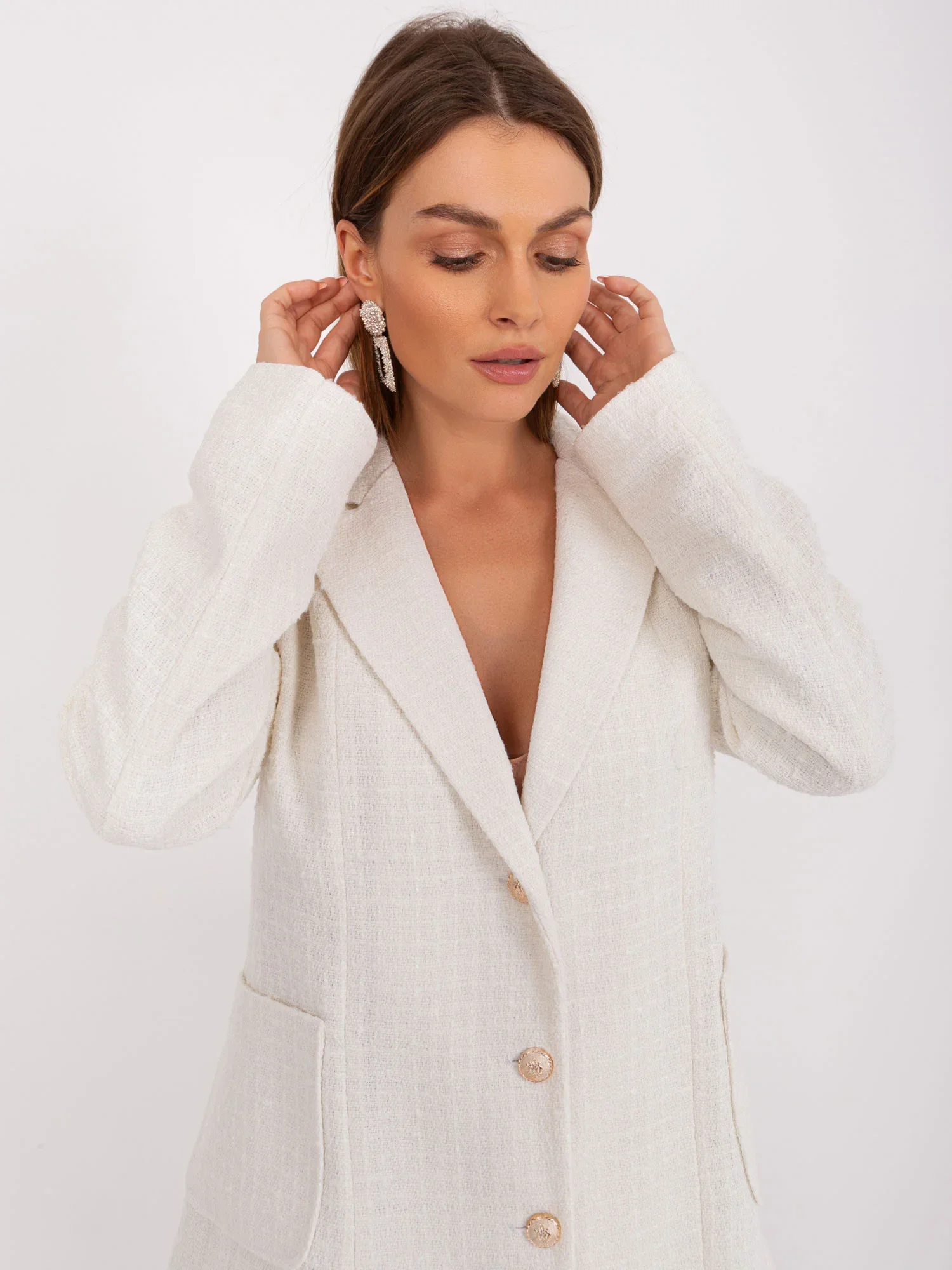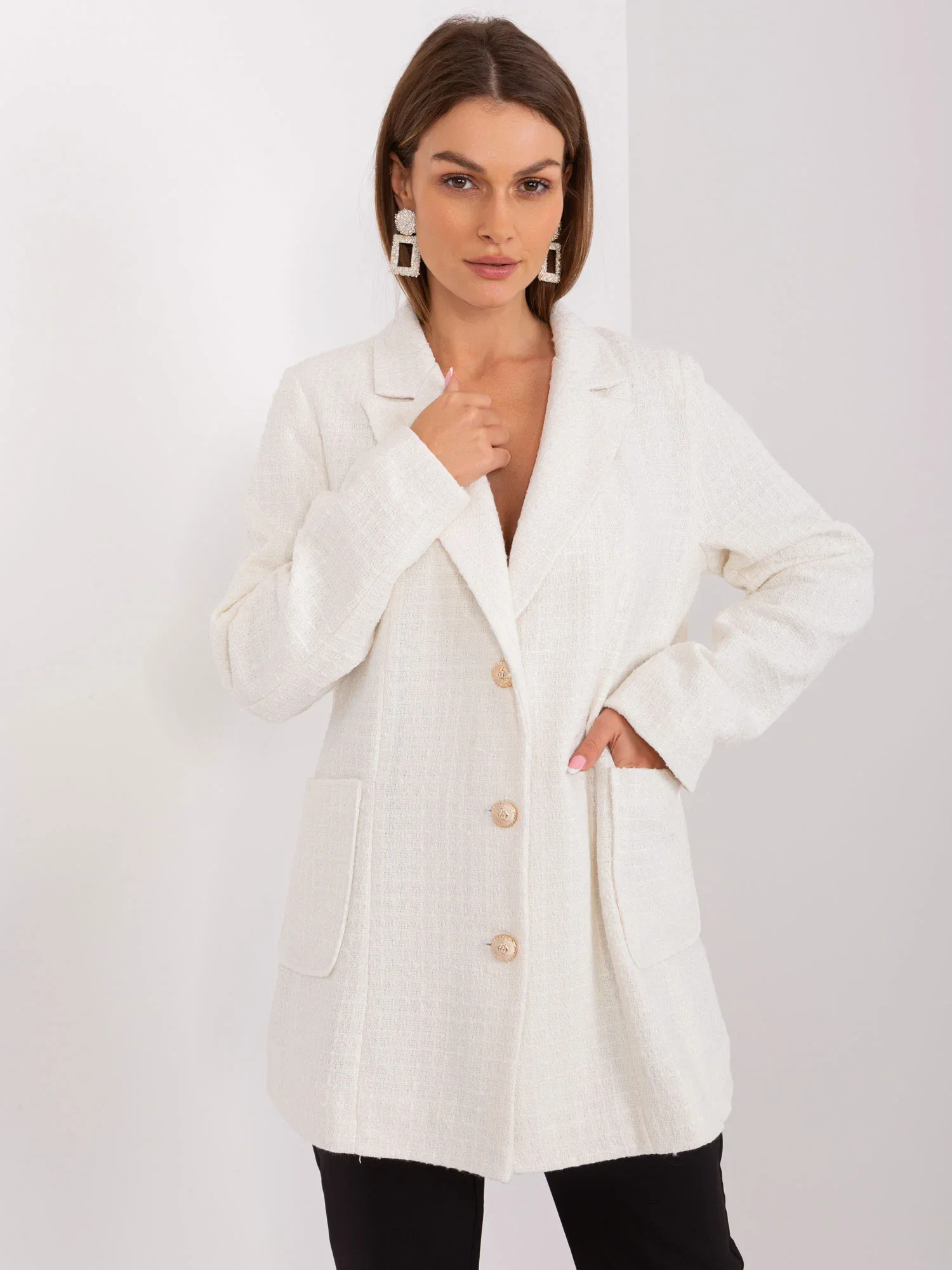 Modelka má na sobě velikost 36. Rozměry modelky: výška 174 cm, prsa 87 cm, pas 61 cm, boky 89 cm.