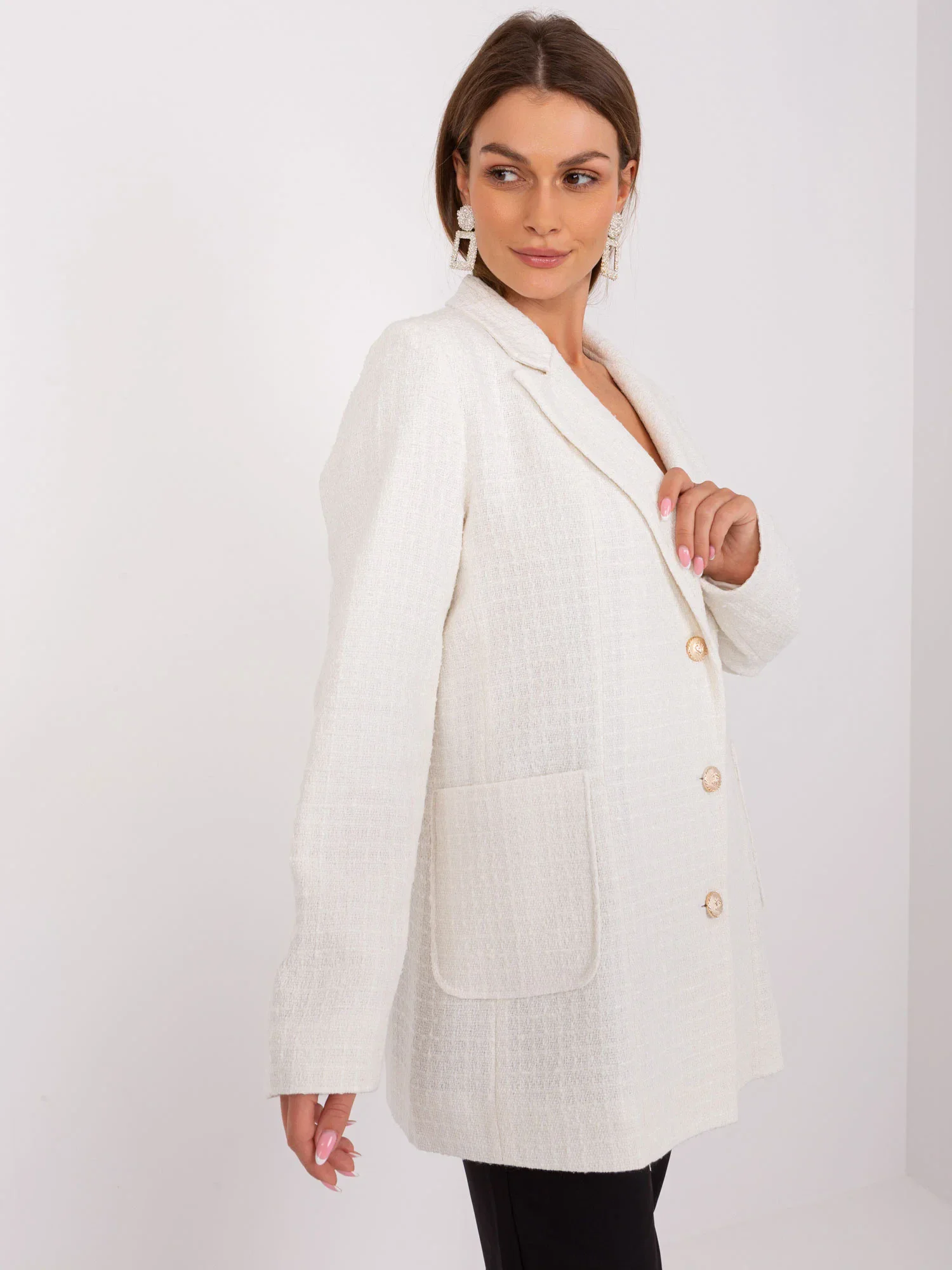 Rozměry kabátu velikosti 36 měřené na plocho: šířka v podpaží - 54 cm, celková délka - 112 cm, délka rukávu - 60 cm