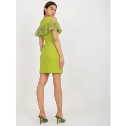 Limetkově zelené koktejlové šaty s širokým volánem.