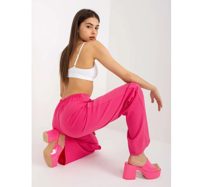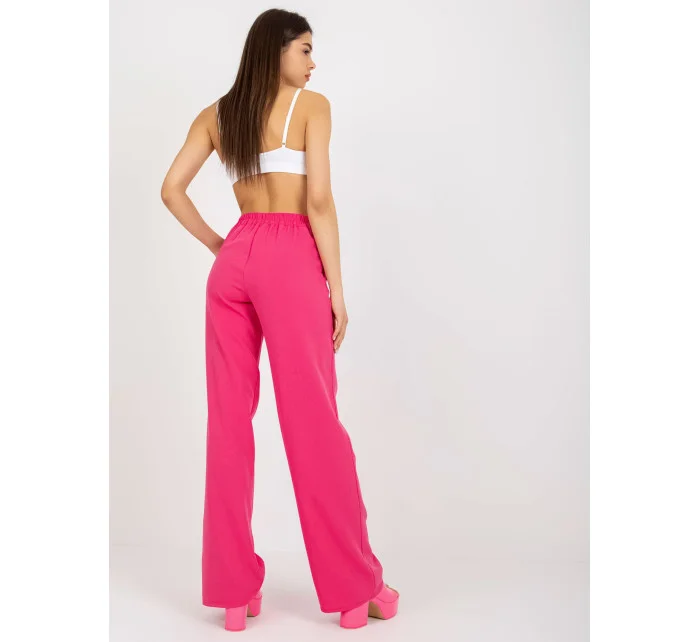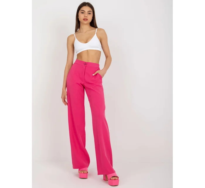 Tmavě růžové oblekové kalhoty z látky .