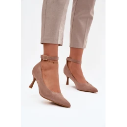Lodičky na podpatku pro ženy vyrobené z měkké ekologické semiše. Model okouzluje klasickým střihem s špičatým nosem, který opticky prodlužuje nohy a dodává postavě lehkost. Boty se zapínají kolem kotníku na nastavitelný popruh s přezkou, který krásně zdůrazňuje nohu, zajišťuje stabilitu a pohodlí při nošení. Tyto lodičky se skvěle hodí jak do večerních stylizací, tak k elegantním outfitům na každý den.