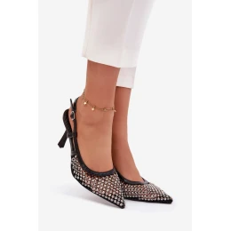 Dámské lodičky s odkrytou patou jsou odvážným a efektním návrhem pro ženy, které preferují výraznější akcenty ve stylizaci. Štíhlé, zašpičatělé špičky přidávají eleganci a dekorativní nýty dodávají celku rockový charakter. Model se zapíná na přezku s nastavitelným páskem, díky čemuž lze pohodlně obuv přizpůsobit noze. Ideální na večerní výlety a stylizace, které mají přitahovat pozornost.