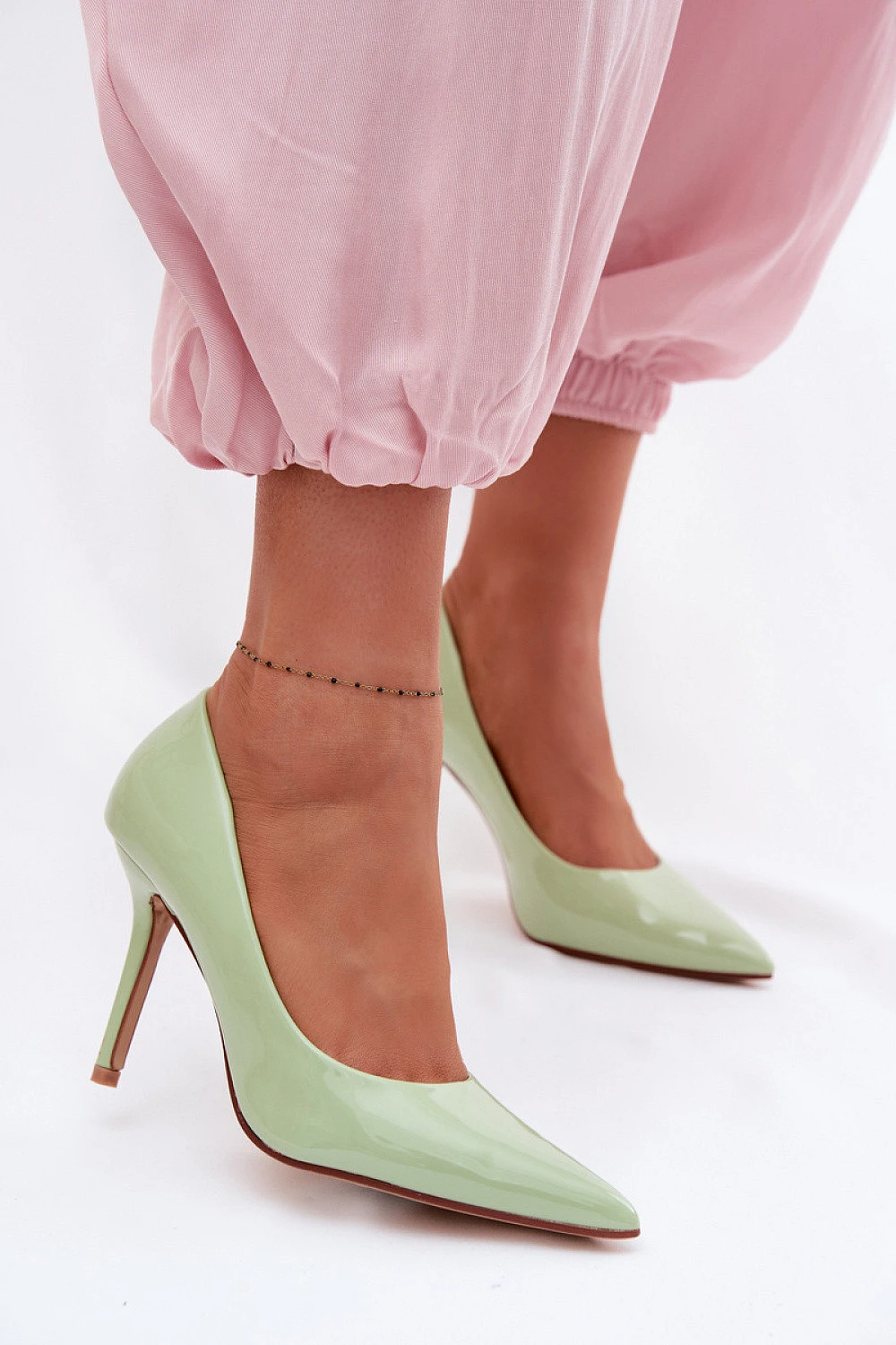 Jehlice vyrobené z lakované ekokože jsou elegantní a nadčasovým návrhem, který skvěle zdůrazňuje ženský styl. Lesklý svršek přitahuje pozornost a dodává celku výjimečný charakter, díky čemuž se model skvěle hodí do stylizací na speciální příležitosti. Vysoký podpatek krásně modeluje postavu, opticky ji zeštíhluje a přidává jistoty do kroku. Špičaté špičky zdůrazňují klasický tvar obuvi, dodávají jí eleganci a subtilitu. Je to ideální volba jak pro večerní kreace, tak pro elegantní sestavy na slavnostní události, schůzky nebo důležité výstupy.