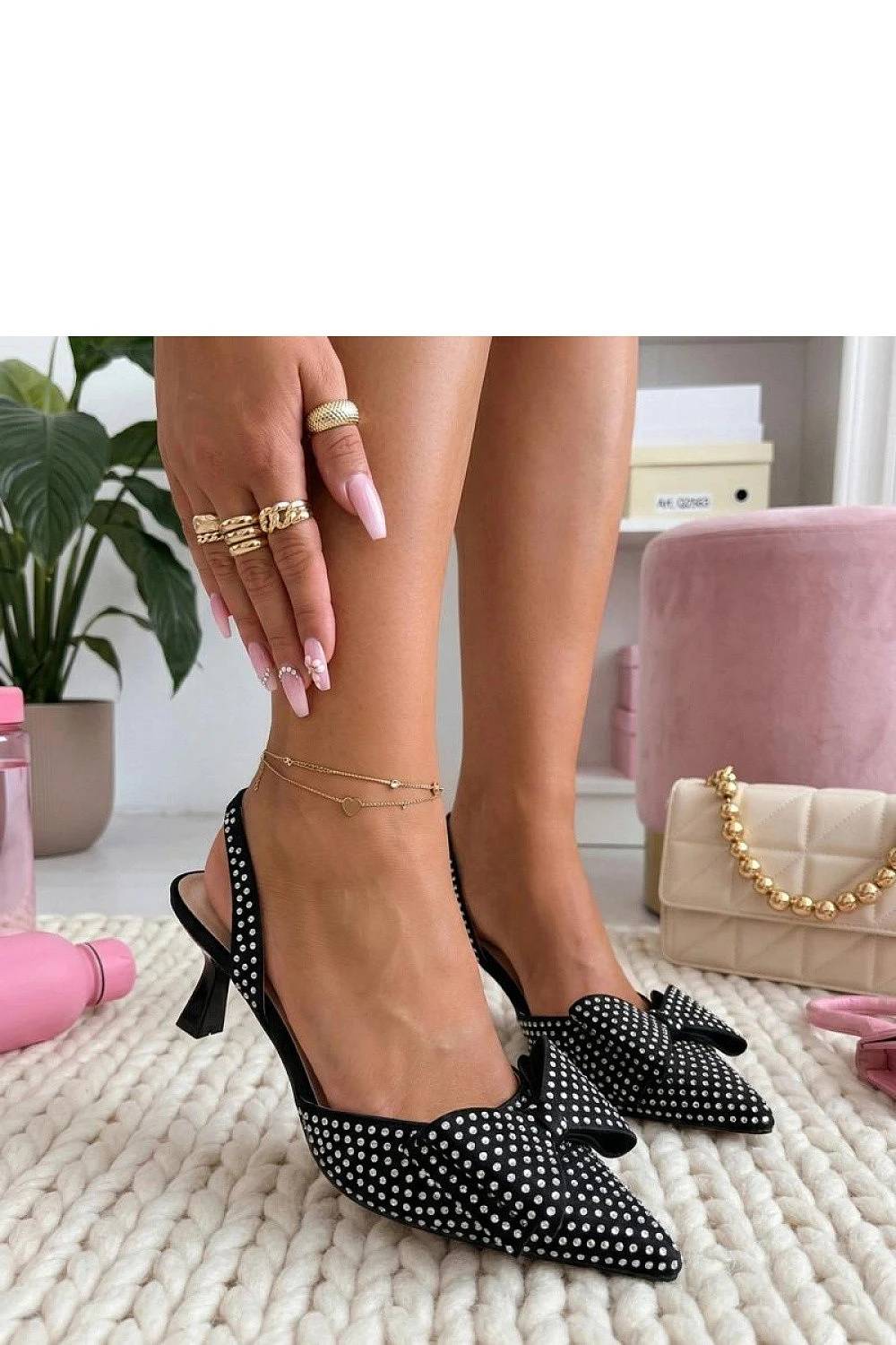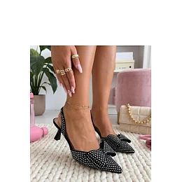 Elegantní lodičky s odkrytou patou jsou výjimečným návrhem pro ženy, které oceňují eleganci a jemný lesk. Vyrobené z vysoce kvalitní ekologické kůže, působí stylově a skvěle se hodí jak na speciální příležitosti, tak na večerní vycházky. Model se vyznačuje ozdobnou mašlí a efektními zirkony, které dodávají celku bižuterní charakter a přitahují pozornost. Špičatá špička opticky prodlužuje nohu, zdůrazňující elegantní vzhled obuvi. Odkrytá pata přidává lehkost a vsuvný střih zajišťuje snadné obutí. Podpatek vysoký 6 cm jemně zdvihuje postavu, zároveň zaručující pohodlí nošení. Vložka z ekologické kůže zvyšuje pohodlí užívání po celou dobu.