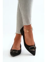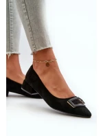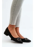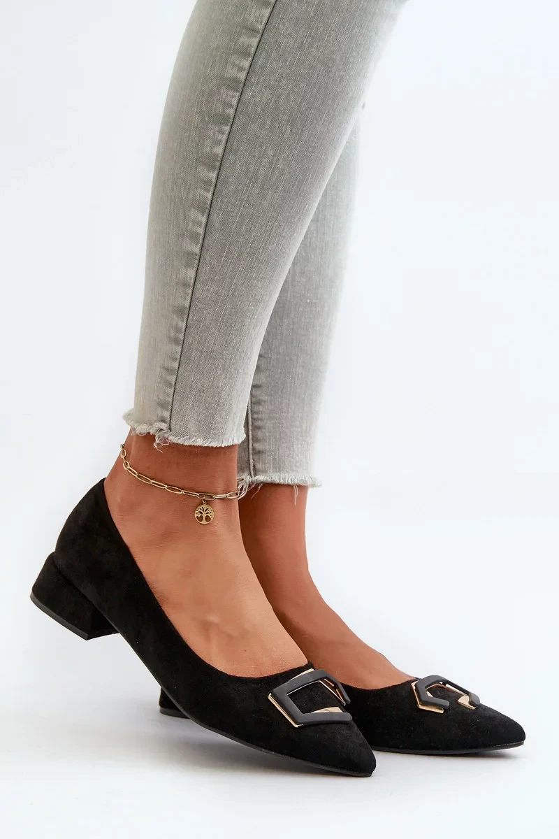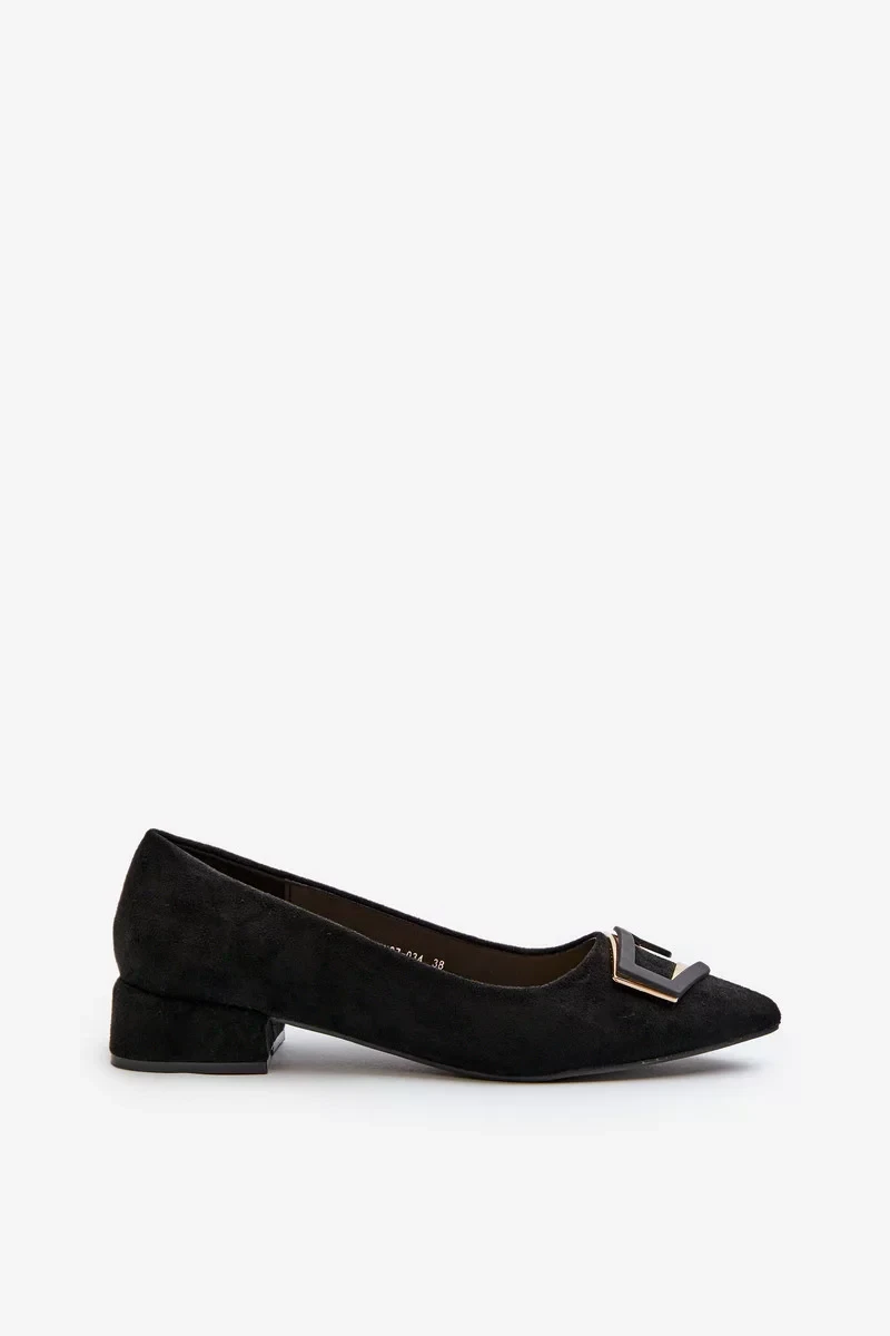 Lodičky na nízkém podpatku s ozdobou, Eco Suede S.Barski Černá