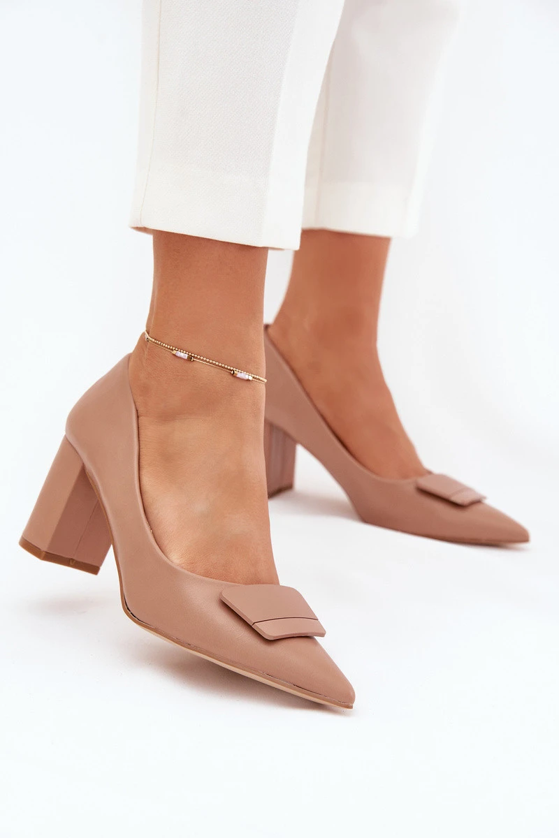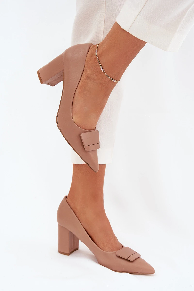 Dámské lodičky z eko kůže, umístěné na sloupkovém podpatku, kombinují eleganci s pohodlím. Špičaté špičky prodlužují nohy a ozdobný detail vpředu jim dodává jemné kouzlo. Elegantní střih způsobuje, že se hodí k formálním stylizacím, dokonale se kombinují s šaty, sukněmi nebo elegantními kalhotami. Při výběru velikosti se řiďte tabulkou velikostí.