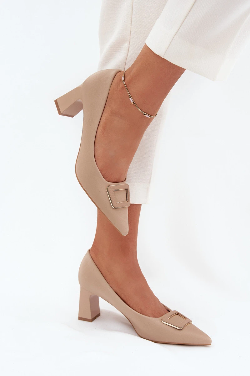 Lodičky Na Podpatku S Dekorativní Přezkou Nude Seriva