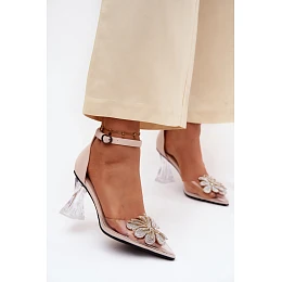 Přidání recenze k Lodičky na podpatku s lesklým zdobením model 22126165 Béžové - VINCEZA