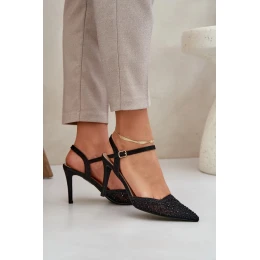 Lodičky na podpatku s otevřenou patou a zdobením Nanadra – černé