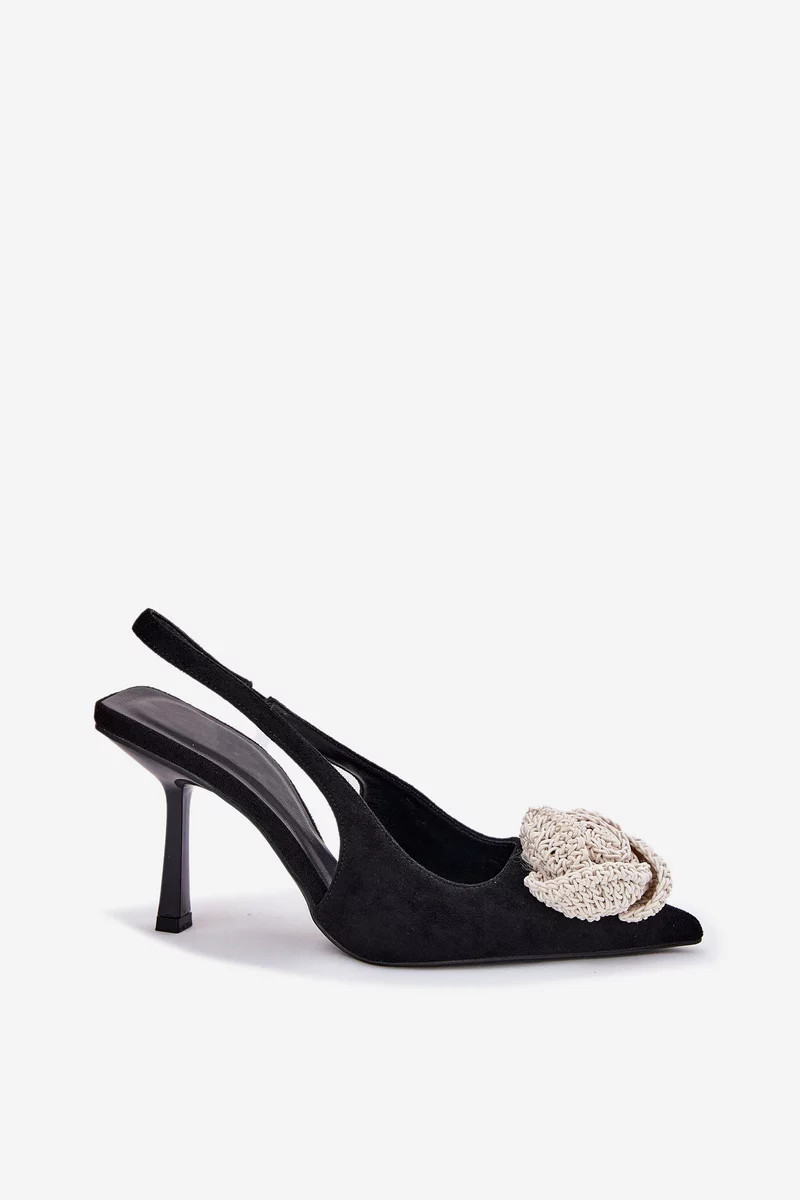 Lodičky na podpatku s ozdobou Anodera – černé (eko semiš)