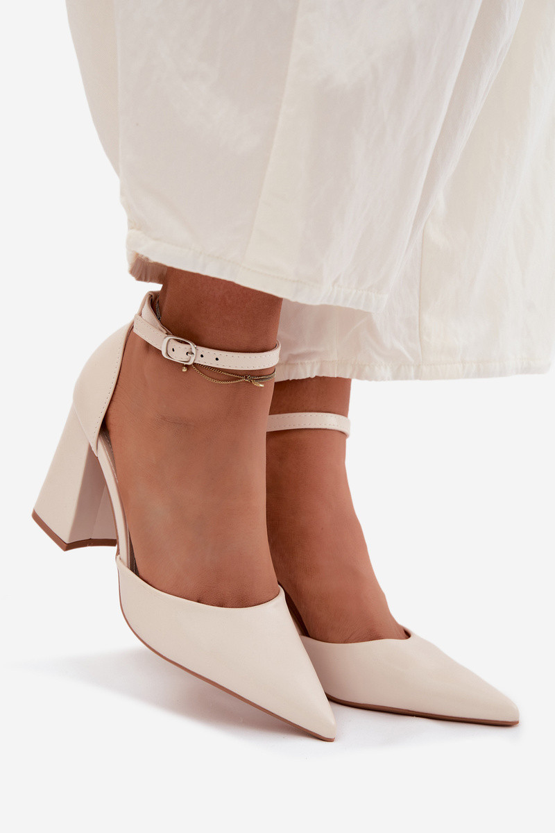 Dámské lodičky z imitace kůže na sloupku jsou elegantní a univerzální volbou, která se skvěle hodí do mnoha stylizací. Klasický tvar v kombinaci s moderním provedením působí stylově a nadčasově. Špičaté nosy dodávají celku sofistikovaný charakter, opticky zeštíhlují nohu a stabilní podpatek typu sloupek zajišťuje pohodlí při nošení. Zapínání na přezku s nastavitelným páskem umožňuje dokonalé přizpůsobení a zároveň dodává jemný akcent. Ideální volba jak do práce, tak na schůzky či elegantnější události, kde je důležitý komfort a styl. Při výběru velikosti se řiďte tabulkou velikostí.