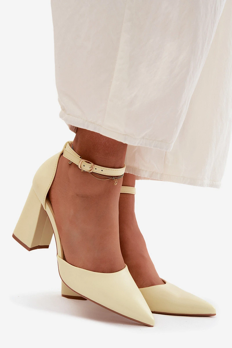 Dámské lodičky z imitace kůže na sloupku jsou elegantní a univerzální volbou, která se skvěle hodí do mnoha stylizací. Klasický tvar v kombinaci s moderním provedením působí stylově a nadčasově. Špičaté nosy dodávají celku sofistikovaný charakter, opticky zeštíhlují nohu a stabilní podpatek typu sloupek zajišťuje pohodlí při nošení. Zapínání na přezku s nastavitelným páskem umožňuje dokonalé přizpůsobení a zároveň dodává jemný akcent. Ideální volba jak do práce, tak na schůzky či elegantnější události, kde je důležitý komfort a styl. Při výběru velikosti se řiďte tabulkou velikostí.