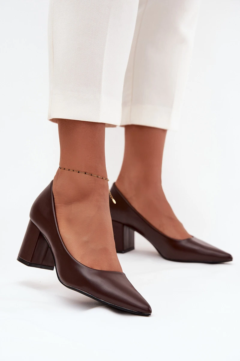 Lodičky na sloupkovém podpatku se čokoládové model 21711480 - Boto