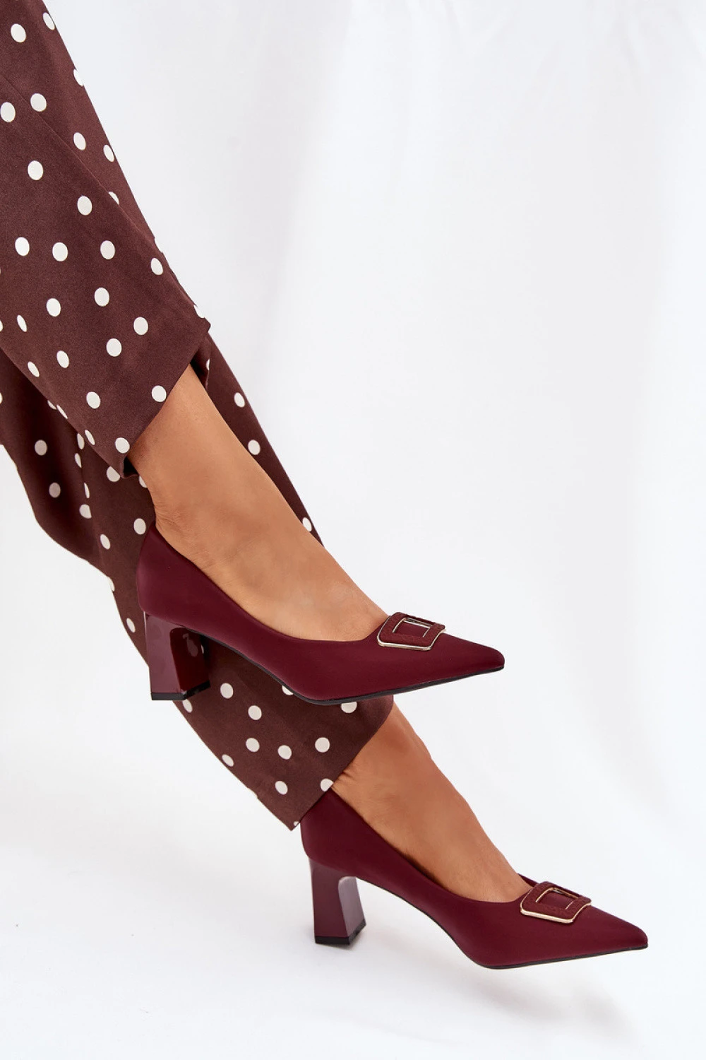 Elegantní dámské lodičky z eko kůže na sloupkovém podpatku jsou skvělým návrhem na různé příležitosti. Dekorativní spona vpředu jim dodává zvláštní charakter a špičatý tvar opticky prodlužuje nohy. Skvěle se hodí ke šatům, sukním nebo kalhotám, tyto lodičky spojují styl, pohodlí a moderní vzhled, vytvářejí nadčasovou klasiku ve vašem šatníku.