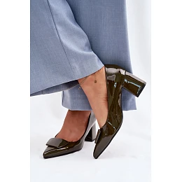 Dámské lodičky vyrobené z ekokože jsou klasickým návrhem, který spojuje nadčasovou eleganci s pohodlím nošení. Model s pevným sloupkovým podpatkem poskytuje pohodlí po celý den, špičaté špičky opticky prodlužují nohy a zdůrazňují ženský charakter. Vepředu je ozdobný detail. Jsou to ideální lodičky pro elegantní stylizace, skvěle se hodí jak do práce, tak na speciální příležitosti, skvěle ladí s šaty, sukněmi a klasickými kalhotami.