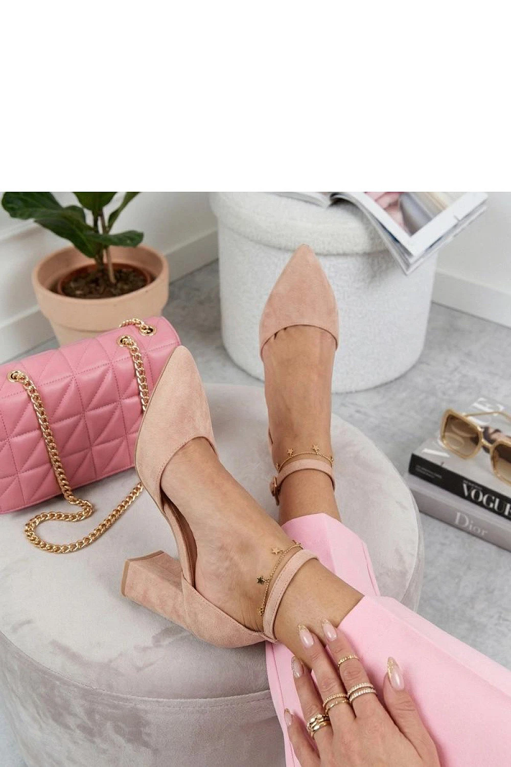 Elegantní lodičky s rafinovaným střihem jsou skvělým návrhem pro ženy, které oceňují styl a pohodlí v každé situaci. Vyrobené z měkké, ekologické semišové kůže vypadají neuvěřitelně elegantně a příjemně se přizpůsobují chodidlu. Špičatý nos opticky prodlužuje postavu a dodává botám moderní charakter. Stabilní sloupcový podpatek o výšce 6 cm zajišťuje pohodlí a jistotu kroku, zároveň zdůrazňuje ženskou siluetu. Model sahající za kotník vyniká elegantním designem a přezka umožňuje ideální přizpůsobení a dodává celku jemnou eleganci. Vložka z ekologické kůže zvyšuje komfort používání i po mnoho hodin. Jsou to stylové lodičky, které se skvěle hodí jak na výjimečné příležitosti, tak do každodenních elegantních stylizací.
