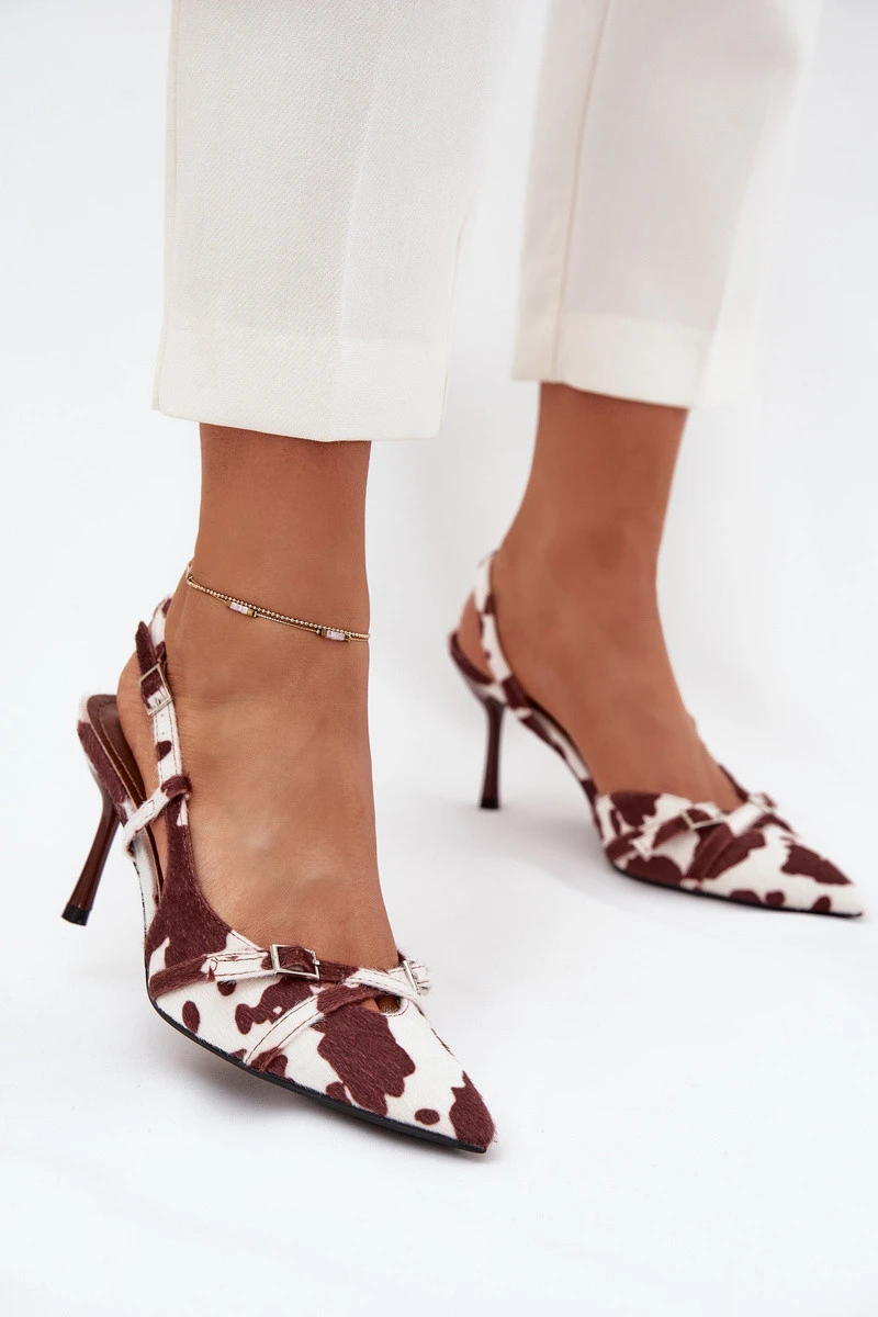 Lodičky S Otevřenou Patou A Pásky Latky Bílá-Hnědá Ravira