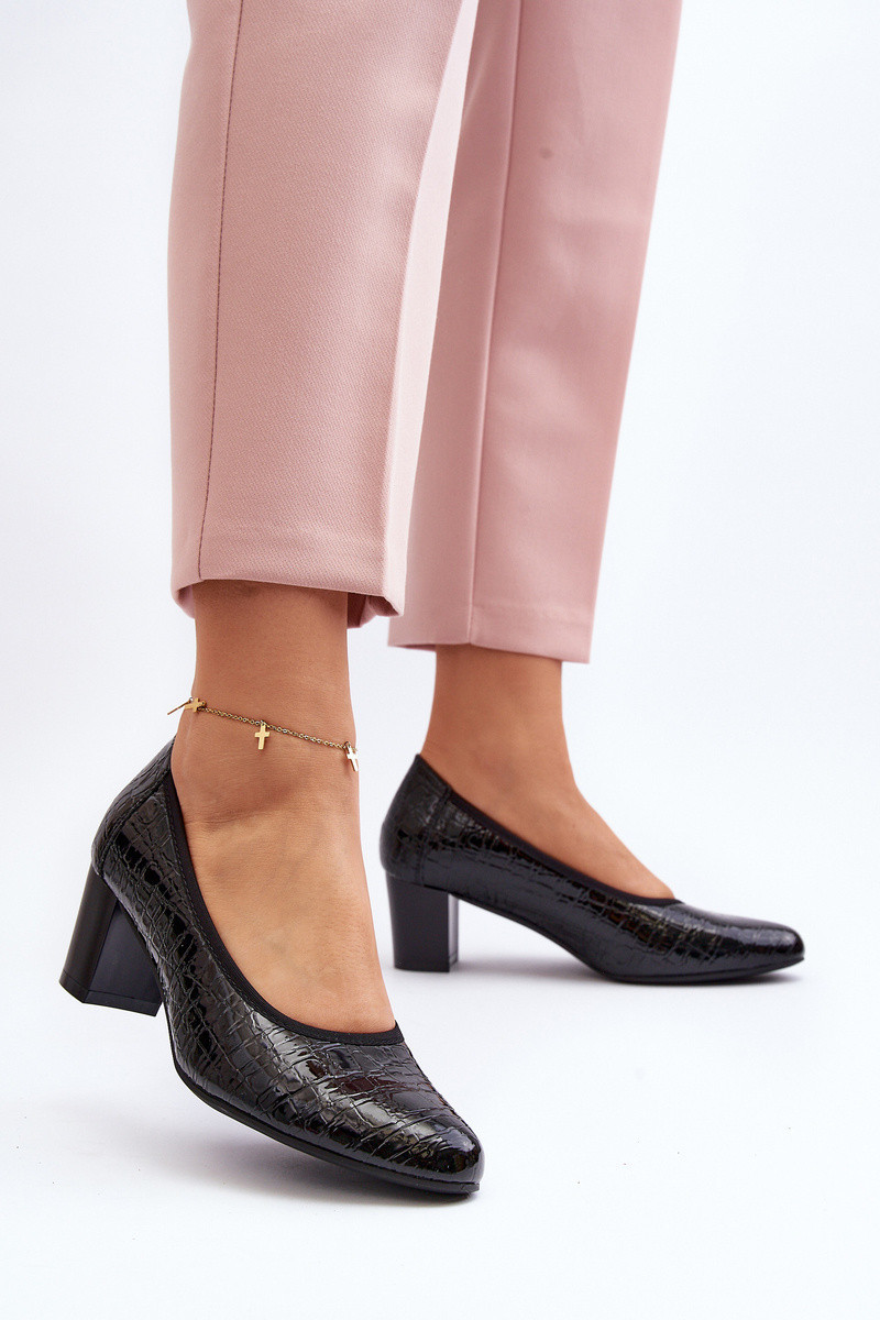 Krásné lodičky s podpatkem ve tvaru nízké sloupku. Měkká a pohodlná vložka je vyrobena z pravé kůže. Špičky jsou mandlové. Model s ozdobným potiskem. Klasické lodičky by měly být součástí vaší šatníku! Určitě je využijete v mnoha situacích. Při výběru velikosti se řiďte tabulkou velikostí.