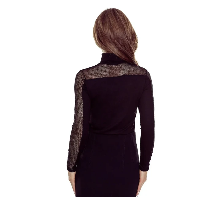 Viskózová dámská halenka s dlouhými rukávy, vrchní část halenky zdobí krajka.