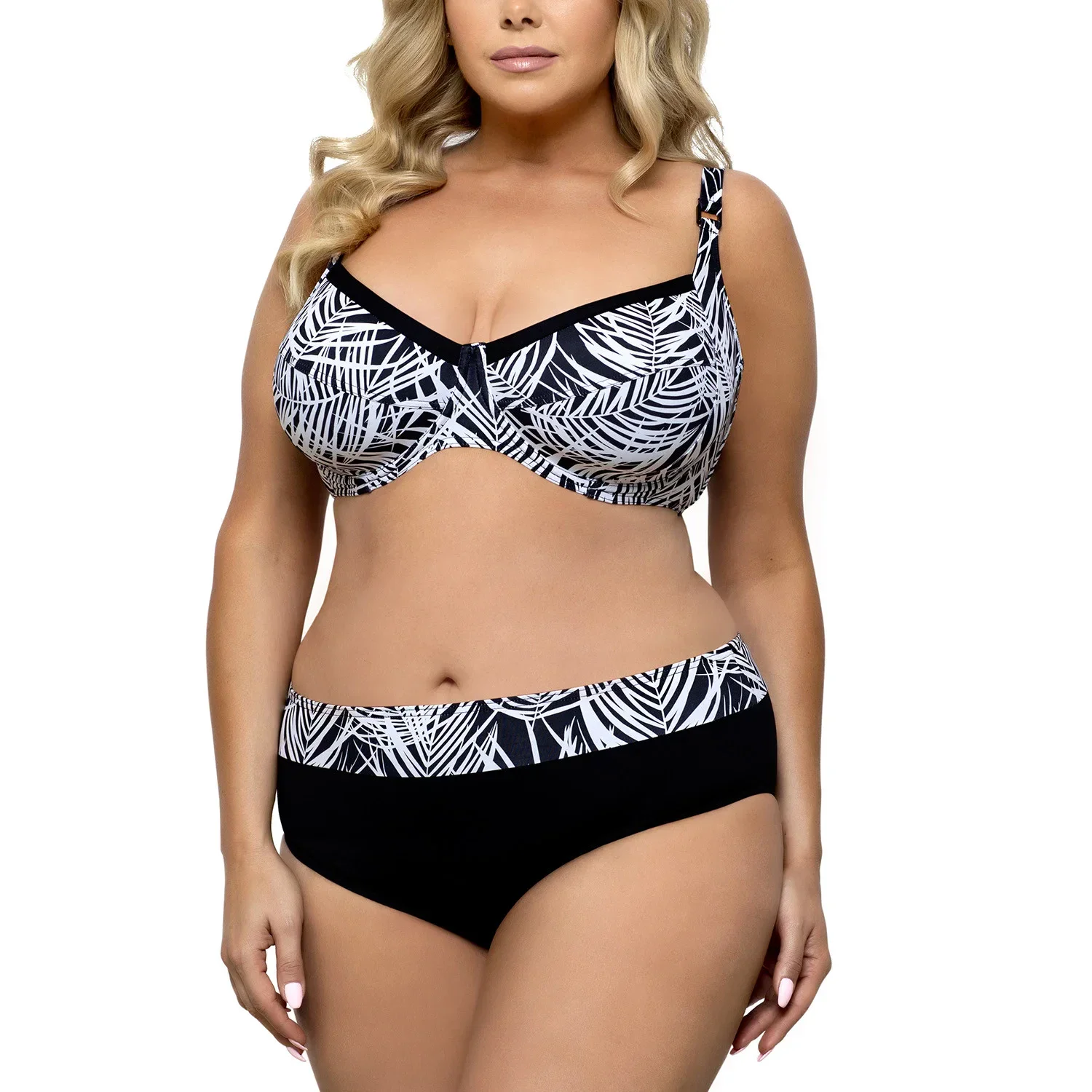 Plavecký kostým Lorin. Model L3089/1. Má dráty, které prsa vhodně tvarují. Svislé velrybí kosti zasazené po stranách. Výrobek má nastavitelné popruhy bez možnosti odepnutí. Kovové háčky na popruh. Plavky se zapínáním na přezku. Upevňovací bod: vzadu. Výrobek je vyroben z 81 % z polyamidu a 19 % z elastanu. Klasické kalhotky. Boky vyztužené látkou. Výrobek pro ženy.