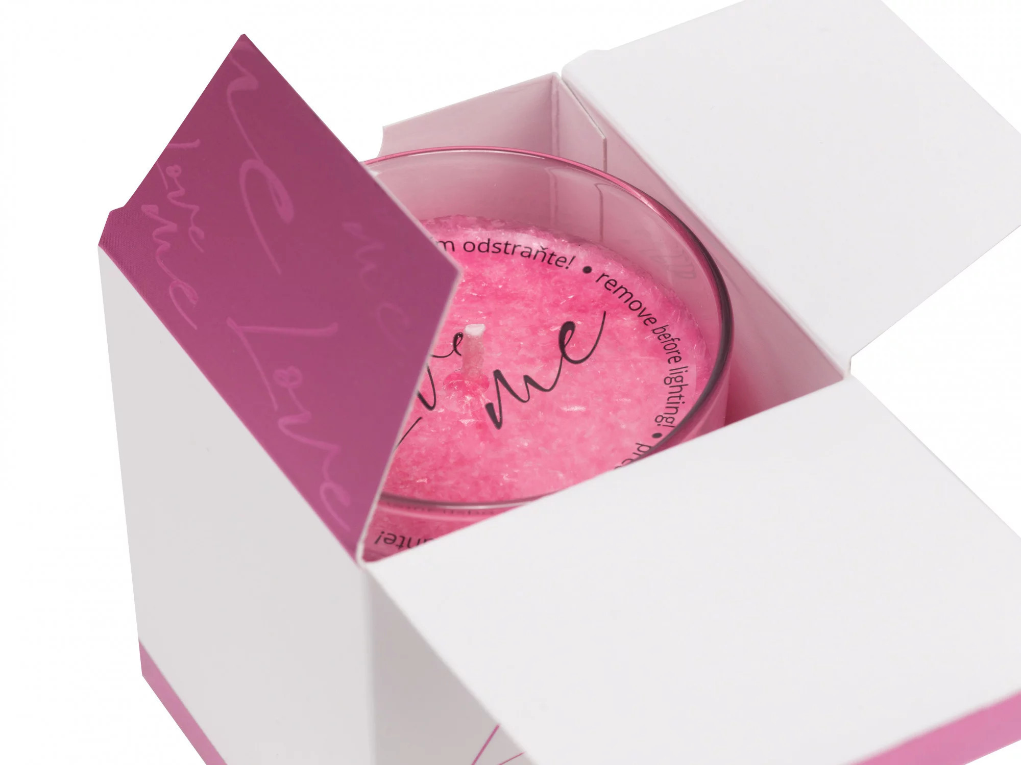 Svíčky Love me jsou vyráběny v České republice. Díky luxusnímu designu se stanou stylovým doplňkem pro váš interiér. Pro výrobu je použit pouze 100% přírodní vosk bez parafínu! Kvalitní 100% bavlněný knot a ideální průměr skleničky zajistí optimální hoření (pro nejlepší výsledky je dobré knot pravidelně zastřihovat do výšky 1cm).