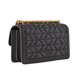 Taška Mini Love Bag je vyrobena z nappy prošívané geometrickými vzory a doplněna zlatou kovovou sponou Love Birds Diamond Cut. Tašku lze nosit přes rameno nebo na ruce díky posuvnému zkrácenému řetízku.