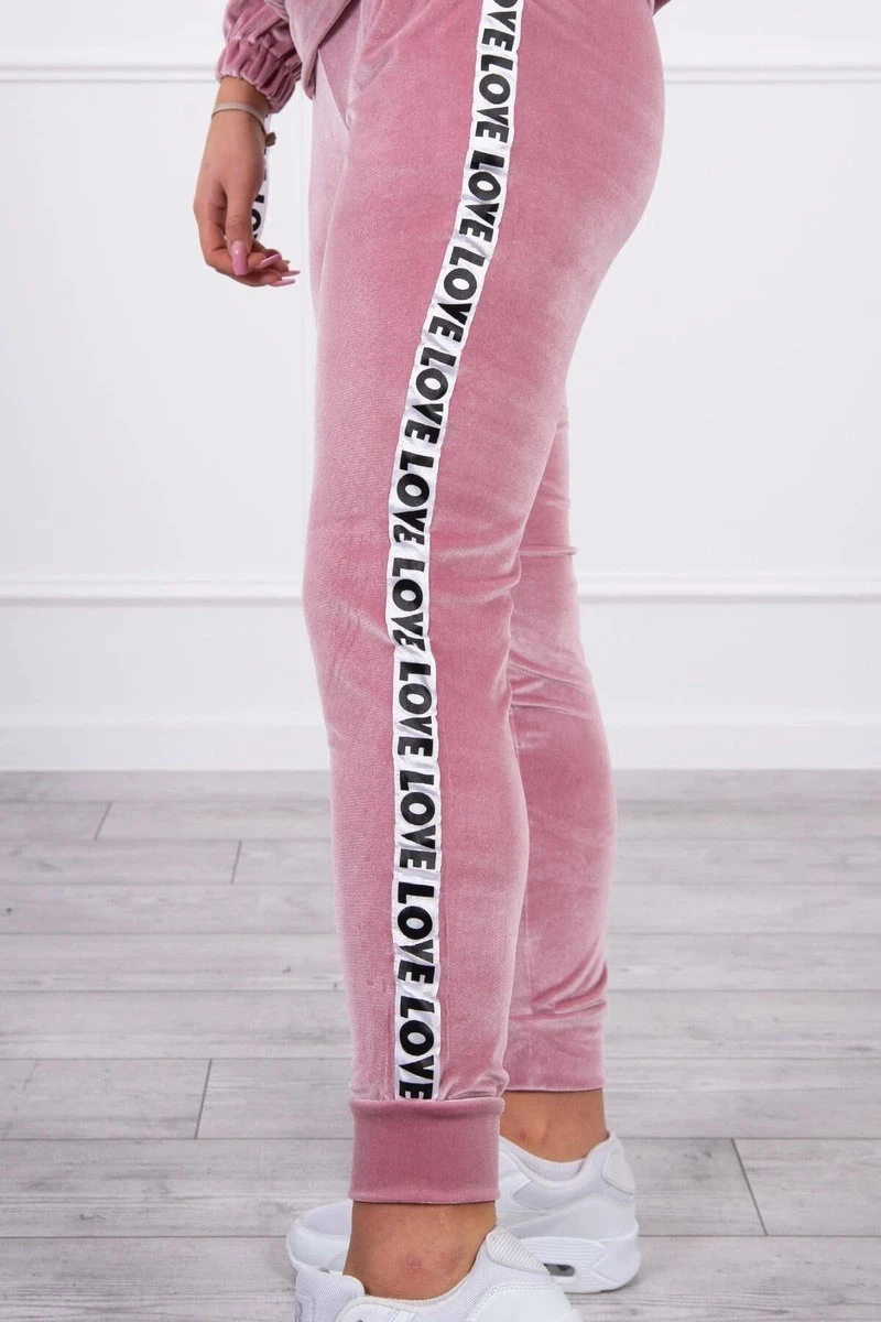 Představujeme vám sadu mikiny a kalhot. Sada z veluru. Mikina má stuhy s nápisem Love. Kalhoty s kapsami a zavazováním v pase. Velmi módní a stylová sada. Sada je vyrobena z vysoce kvalitního materiálu. Velikost je univerzální a vyhovuje dámám velikosti S, M nebo L.
