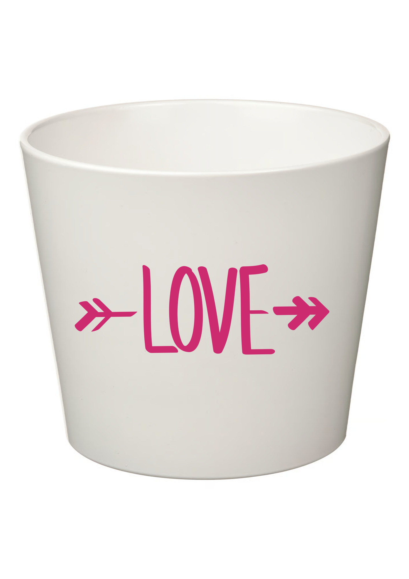 Elegantní bílý květináč s minimalistickým nápisem „LOVE“ je stylovým doplňkem do každého interiéru. Jednoduchý, ale výrazný motiv symbolizuje lásku, harmonii a pozitivní energii, díky čemuž se skvěle hodí nejen jako dekorace, ale i jako milý dárek pro někoho blízkého.