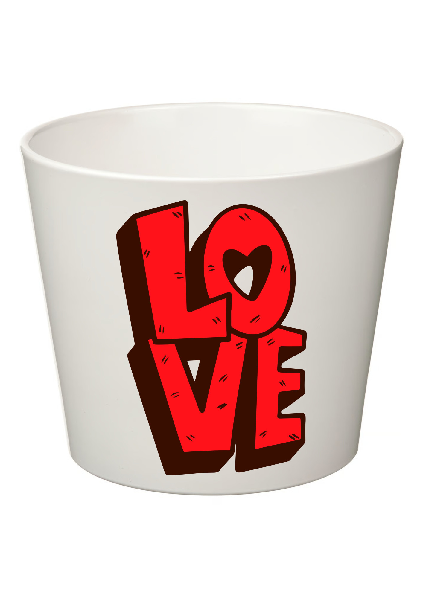 Elegantní bílý květináč s minimalistickým nápisem „LOVE“ je stylovým doplňkem do každého interiéru. Jednoduchý, ale výrazný motiv symbolizuje lásku, harmonii a pozitivní energii, díky čemuž se skvěle hodí nejen jako dekorace, ale i jako milý dárek pro někoho blízkého.
