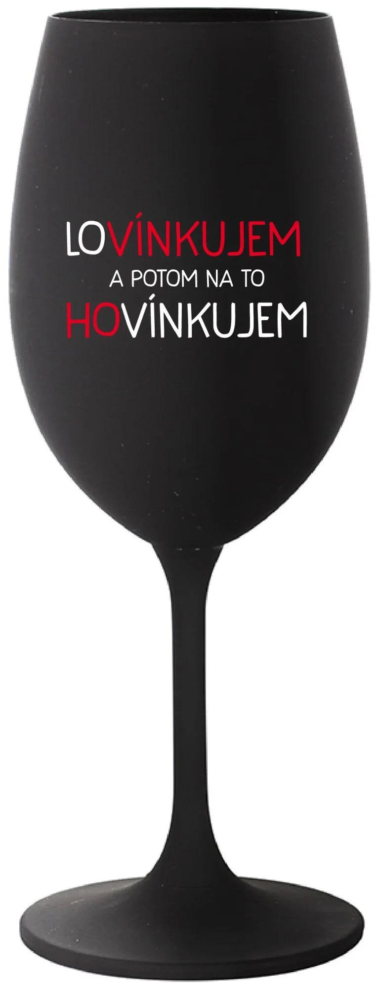 LOVÍNKUJEM A POTOM NA TO HOVÍNKUJEM - čierny pohár na víno 350 ml