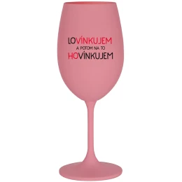 LOVÍNKUJEM A POTOM NA TO HOVÍNKUJEM - ružový pohár na víno 350 ml