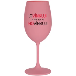 LOVÍNKUJI A PAK NA TO HOVÍNKUJI - růžová sklenice na víno 350 ml