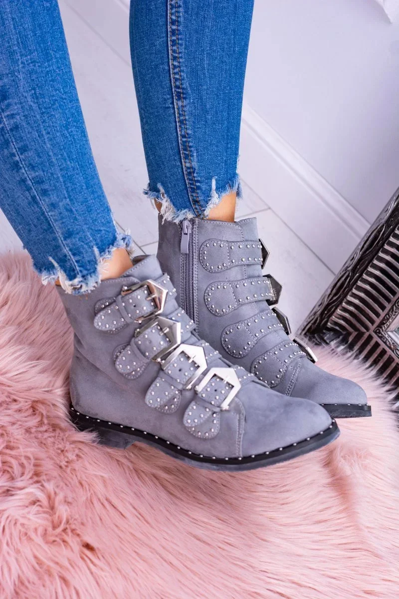 Přidání recenze k Lu Boo tmavě šedé semišové kotníkové boty Virginia Rock Star